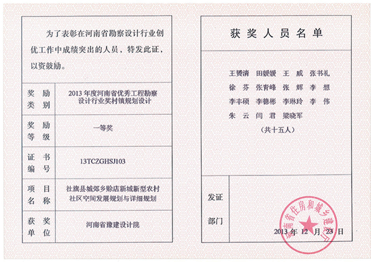 社旗賒店社區(qū)-獲獎證書-2013年獲獎證書-公司榮譽(yù)