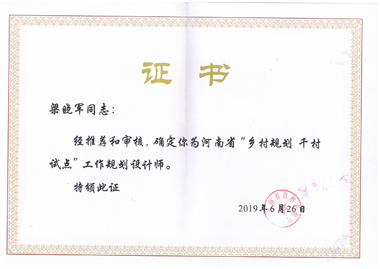梁曉軍下鄉(xiāng)規(guī)劃師證書-下鄉(xiāng)規(guī)劃師證書-公司榮譽(yù)