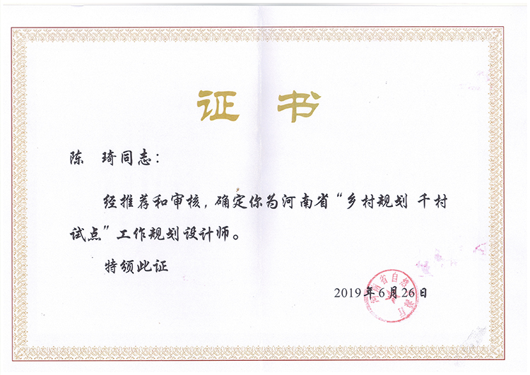 陳琦下鄉(xiāng)規(guī)劃師證書-下鄉(xiāng)規(guī)劃師證書-公司榮譽