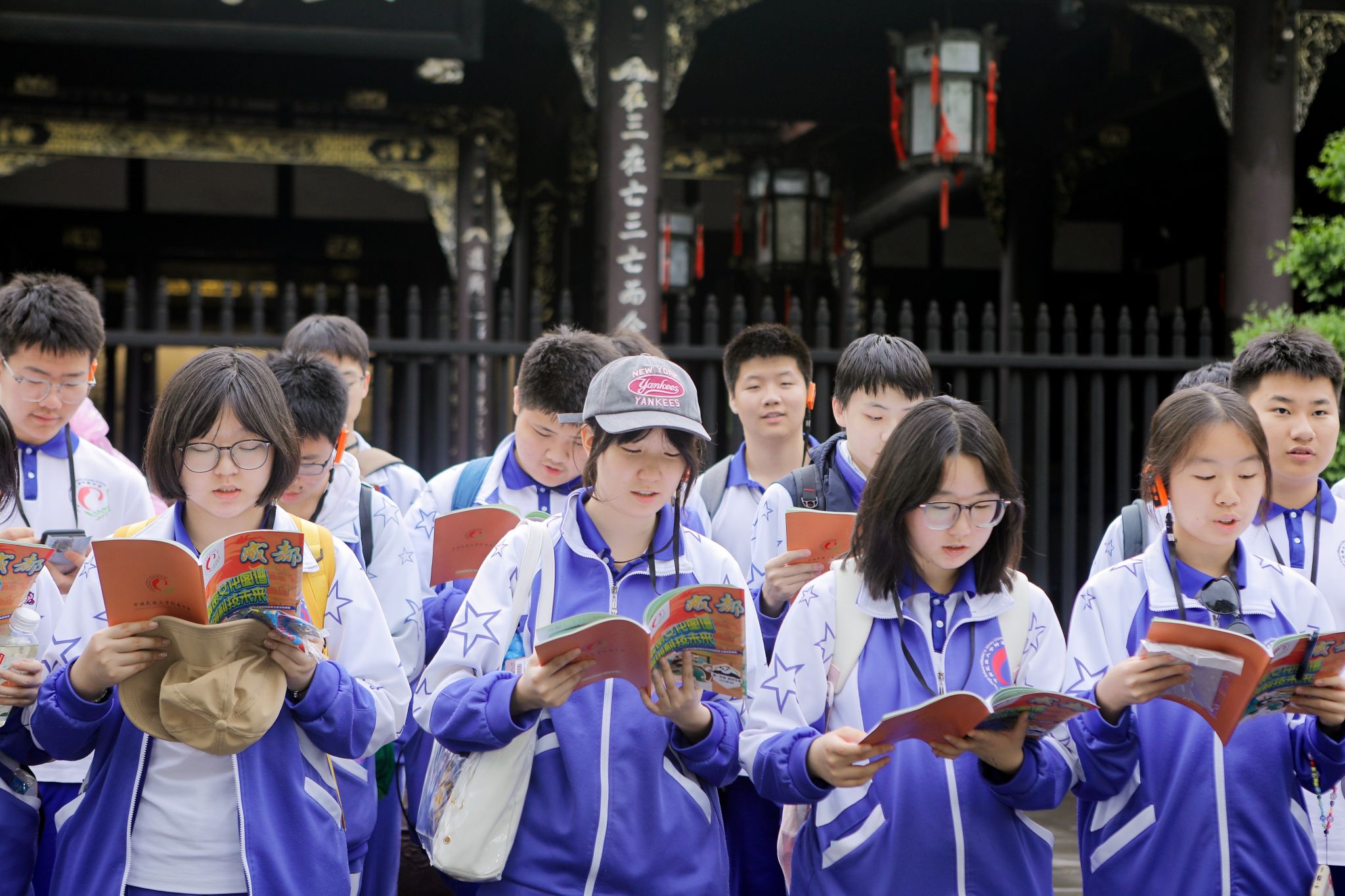 4月21日早晨,民大附中朝阳校区高一年级300余名学子背着行囊、怀揣书卷踏上成都研学的列车。在历时五日的行走中,候车室、高铁上、公园休息的片刻,都有同学们读书的身影。高铁车厢里的传统阅读“移动课堂”诠释知行合一。列车以350km/h疾驰时,《中国高铁技术发展图鉴》的书页正在同学们膝头翻动,物理深度爱好者将车头曲线与书中"风阻系数优化"对照验证。 当窗外闪过层叠山脉,《地理空间与交通布局》的等高线图在研学手册上...