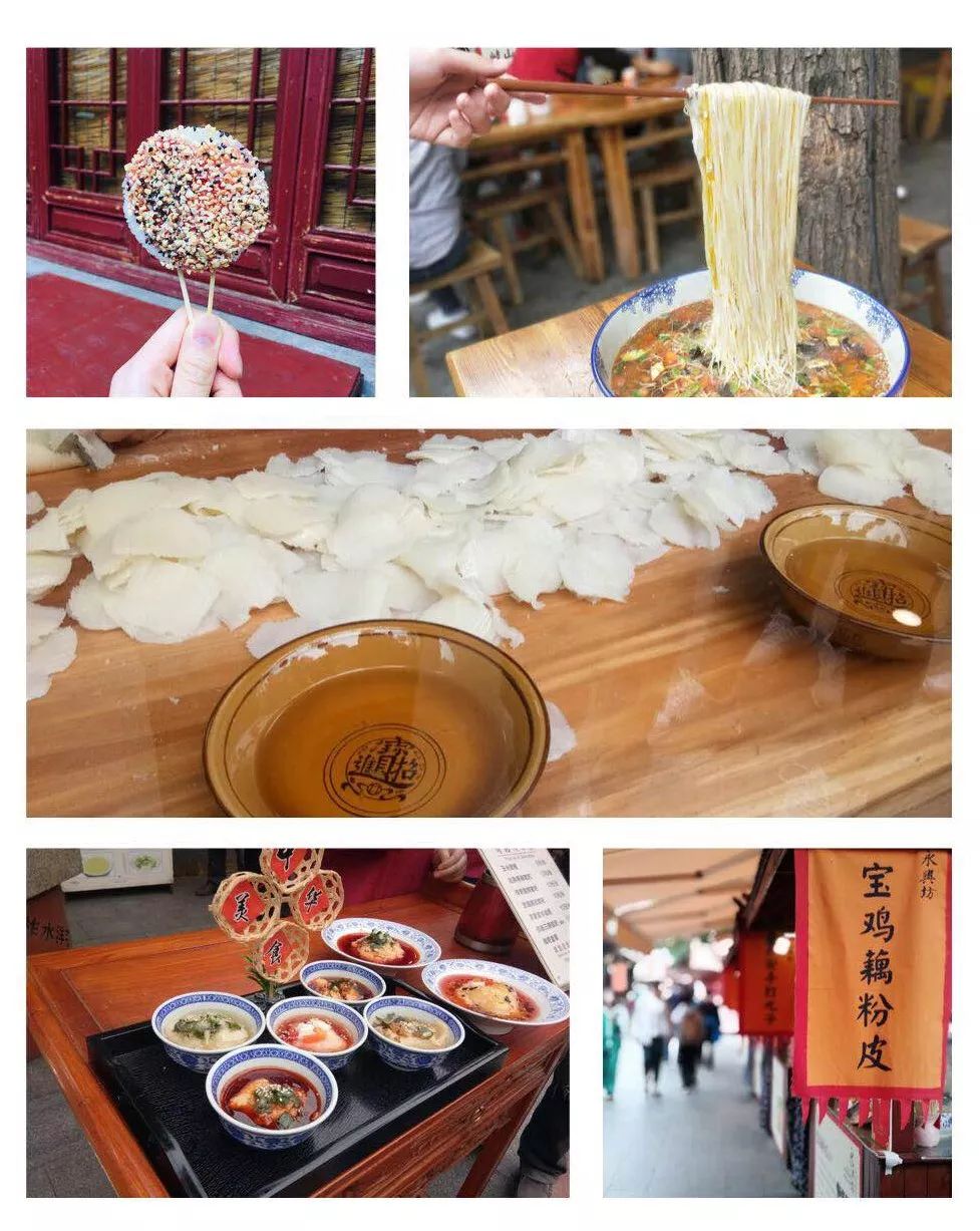 永兴坊内聚集着众多“山西名吃”,悠久历史的风味,传统美食的魅力,吸引了海内外众多游人。同学们徜徉其中,尽情感受油盐茶醋中的地道西安。(肉夹馍、黄馍馍、酿皮、镜糕、biang biang面……)