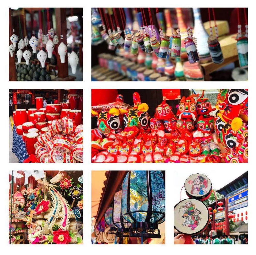 一旁的文创街里,是琳琅满目腰鼓、陶笛、陶埙、快板、皮影工艺品……民俗味儿满满的老西安,让同学们大饱眼福。