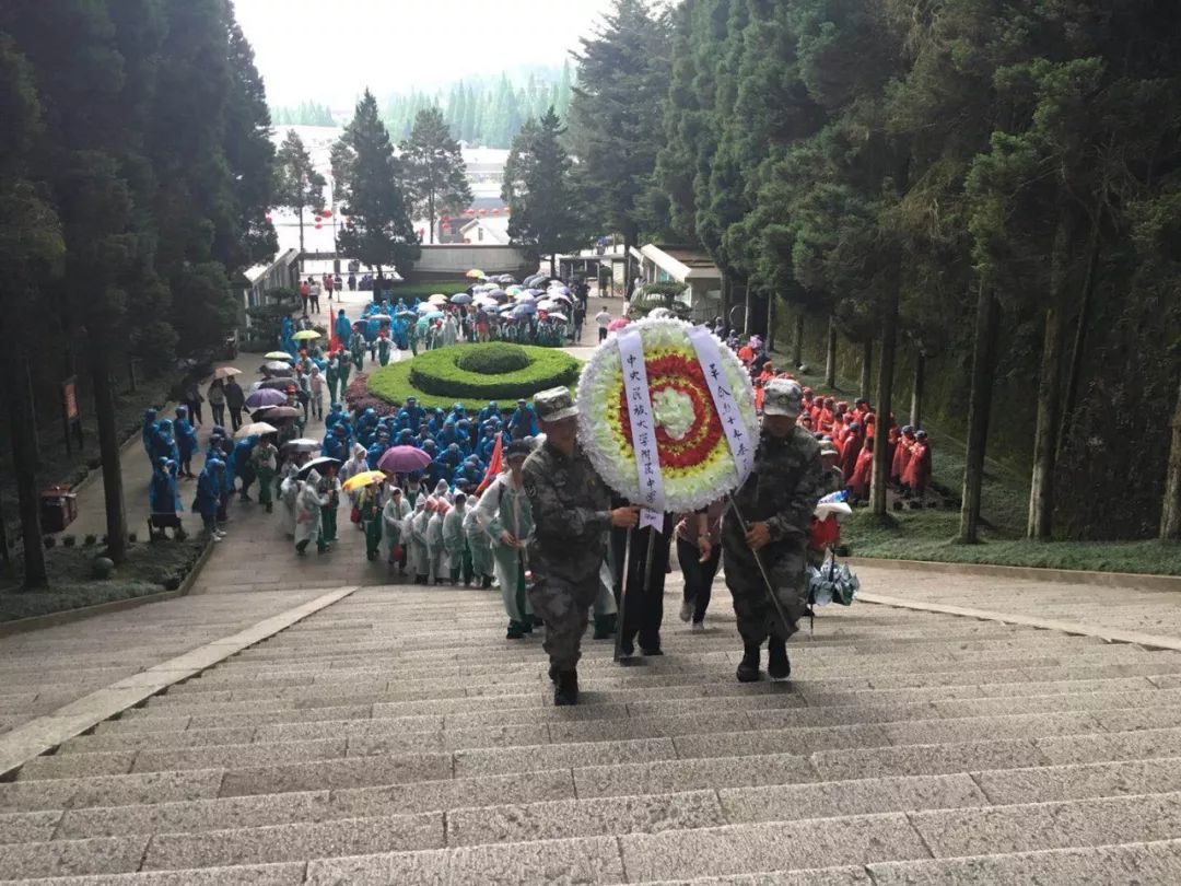 青山一旦埋忠骨,史册千秋注英名。来到北山革命烈士陵园,我们举行革命先烈的祭奠仪式,向革命烈士进献花篮。烈士们用鲜血浇灌了革命胜利之花,用生命谱写了光昭千秋,气吞山河的壮丽史诗。墙壁上镌刻的那一个个名字,值得我们永生铭记。九十多年尘与土,四万烈士血与肉。凭人问,捐躯换正义,为了谁?在清风鸟语,雨水阵阵中,我们的灵魂有了哀愁的寄托。
