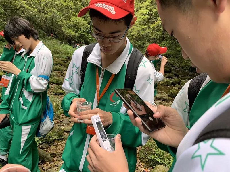 到达金鞭溪旁,同学们在向辅导员学习了水质检测仪的使用方法后,便兴致勃勃地采样、检测,许多同学的动作之敏捷令人啧啧称奇。检测结果表明,张家界的水质非常好,同学们也因金鞭溪水之清而纷纷感叹。到这里,第三天上午的行程便告一段落了。