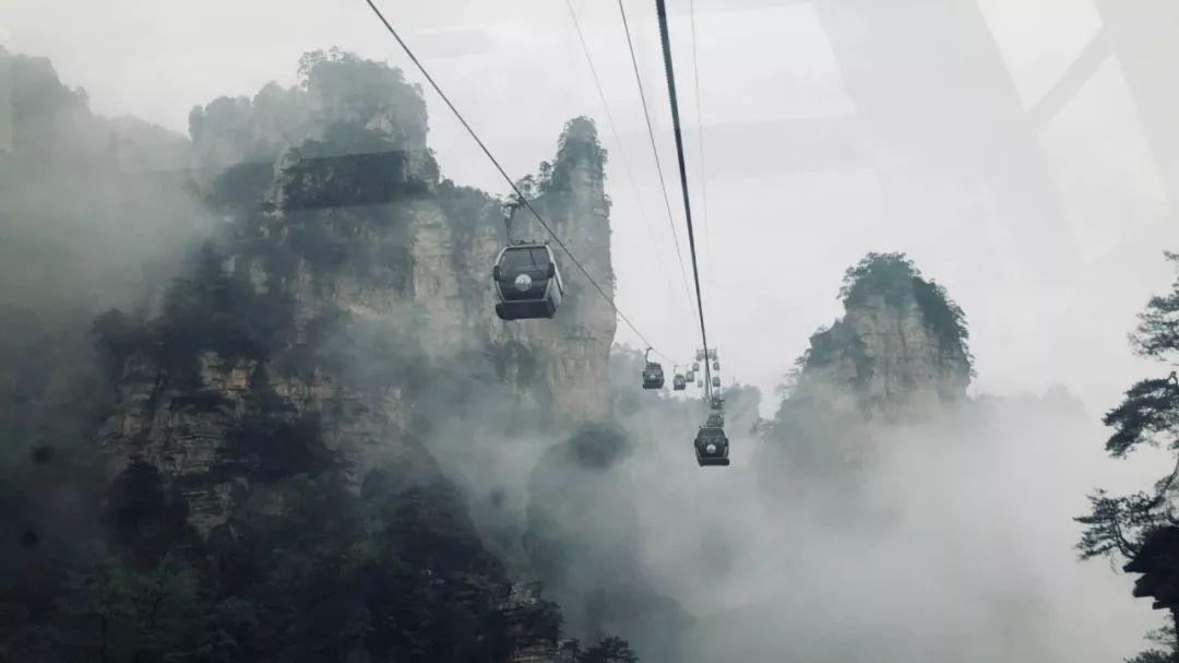 再次冲破茫茫云层,人间的景象渐现于眼前。天微雨,雾如纱,小小的缆车漫游在寥廓的山天之间,载满了少年少女们如花的笑颜。短暂邂逅的刹那间,却留下记忆的永远。