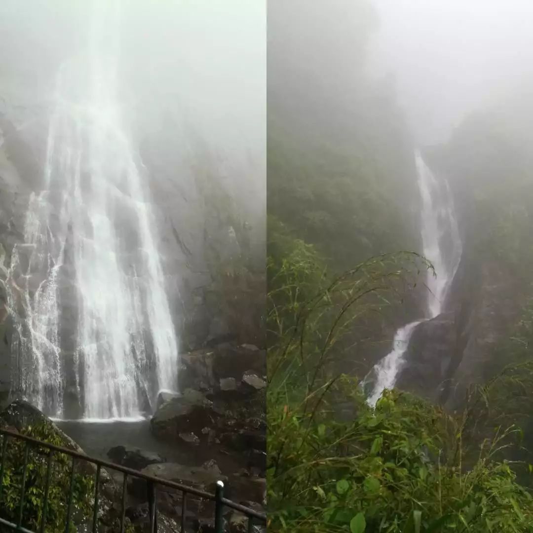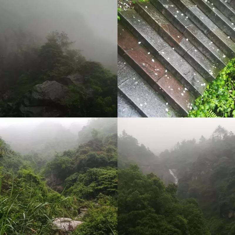 随后,我们便正式开启了爬山的征程。湿漉漉的石阶,上面布满了青苔,道路虽危险,但并没有阻挡我们登顶的意愿。一路上,大家相互扶持,相互帮助。沿途的风景,每个角度都不同,此刻领会到了诗人苏轼的“横看成岭侧成峰,远近高低各不同”。同一处风景,不同的角度,不同的感受。伴着湿润的空气,茂密的丛林,我们终是爬到了山顶,早已是汗流浃背,脸庞发烫,如同红苹果一般。可登上山顶后,才觉得不虚此行。中间想过放弃,但是不知是什么力量一直在支持着我们,坚持着,努力着,登上了山顶。漫山的雾霭,将瀑布的源头悄悄藏了起来,但并没能阻挡它“飞流直下三千尺”的气势,“哗哗”的流水声,以其迅猛的气势拍打在险峻的石壁上,飞蹦出来的小水珠,迎面落在滚烫的面颊上,凉快了身体,体悟了瀑布的雄伟,领略庐山的秀美。