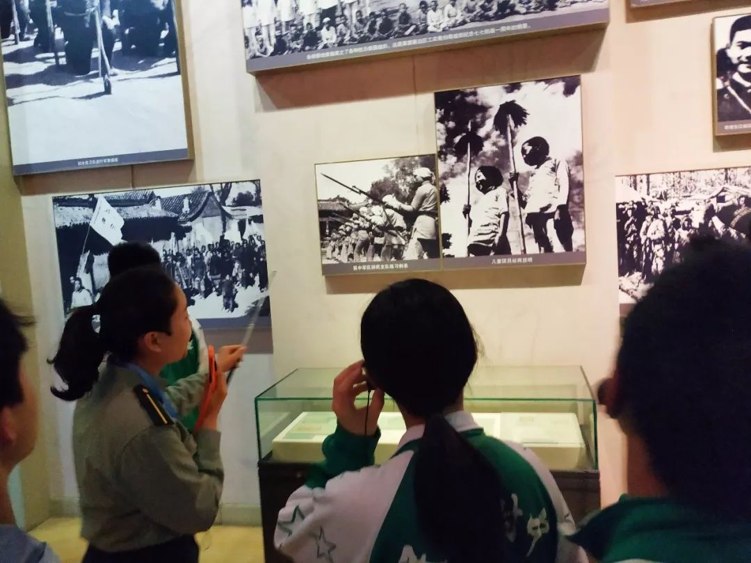 同学们正在认真听导游讲解领导人的故事