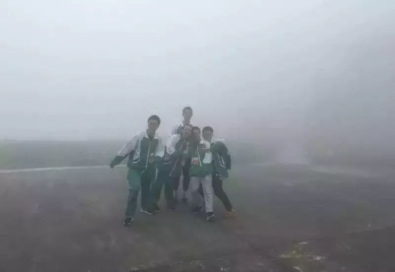 也许是我们运气好,正当我们举行闭营仪式时,浓雾将我们包围,让我们经历了庐山稀奇的雾景。曾经多次在远处遥望云雾,这次确实亲身体验了置身浓雾的感觉。只觉得密密麻麻的小水滴拍打在脸上,在下一个瞬间又结成了霜,同学们一瞬“白头”。回到车上,头上的霜开始融化。同学们戏称:“真是一头‘雾水’”。