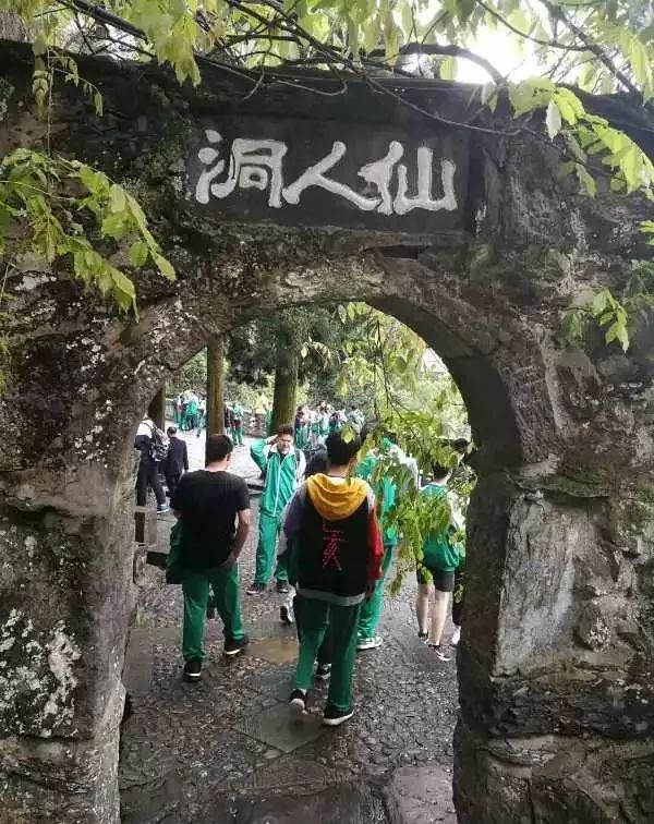 来到锦绣谷,同学们相接步行在林荫小道上,雨后台阶很滑,但同学们相互帮助,互相提醒,有序的队伍成为了景区一道亮丽的风景线。红色的祈福飘带在浓郁的翠绿中显得格外耀眼,锦绣谷的景观秀丽险峻,绿色的身影在一级级台阶上若隐若现。自然风光在薄雾的映衬下更显美妙。