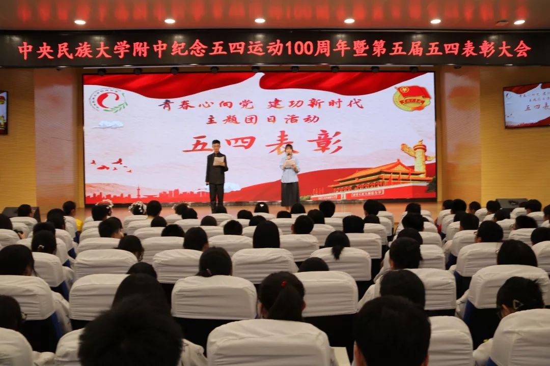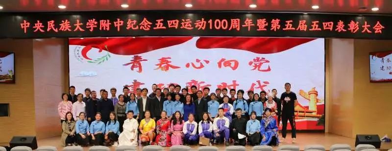 今天,我们隆重集会,纪念五四运动100周年,继承五四光荣传统,弘扬五四精神,展现民附青年的风采,发扬我校各美其美、美美与共的校训。