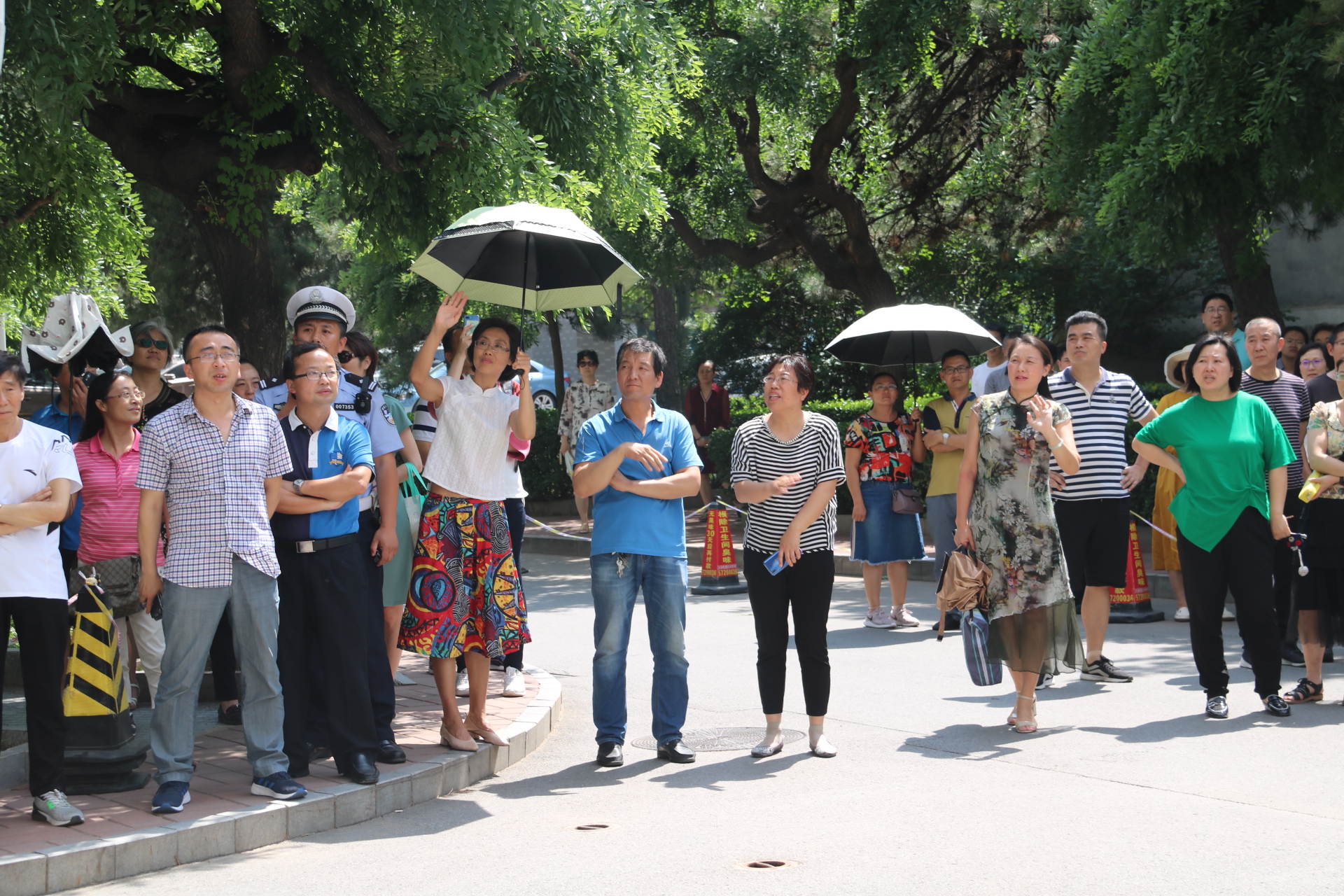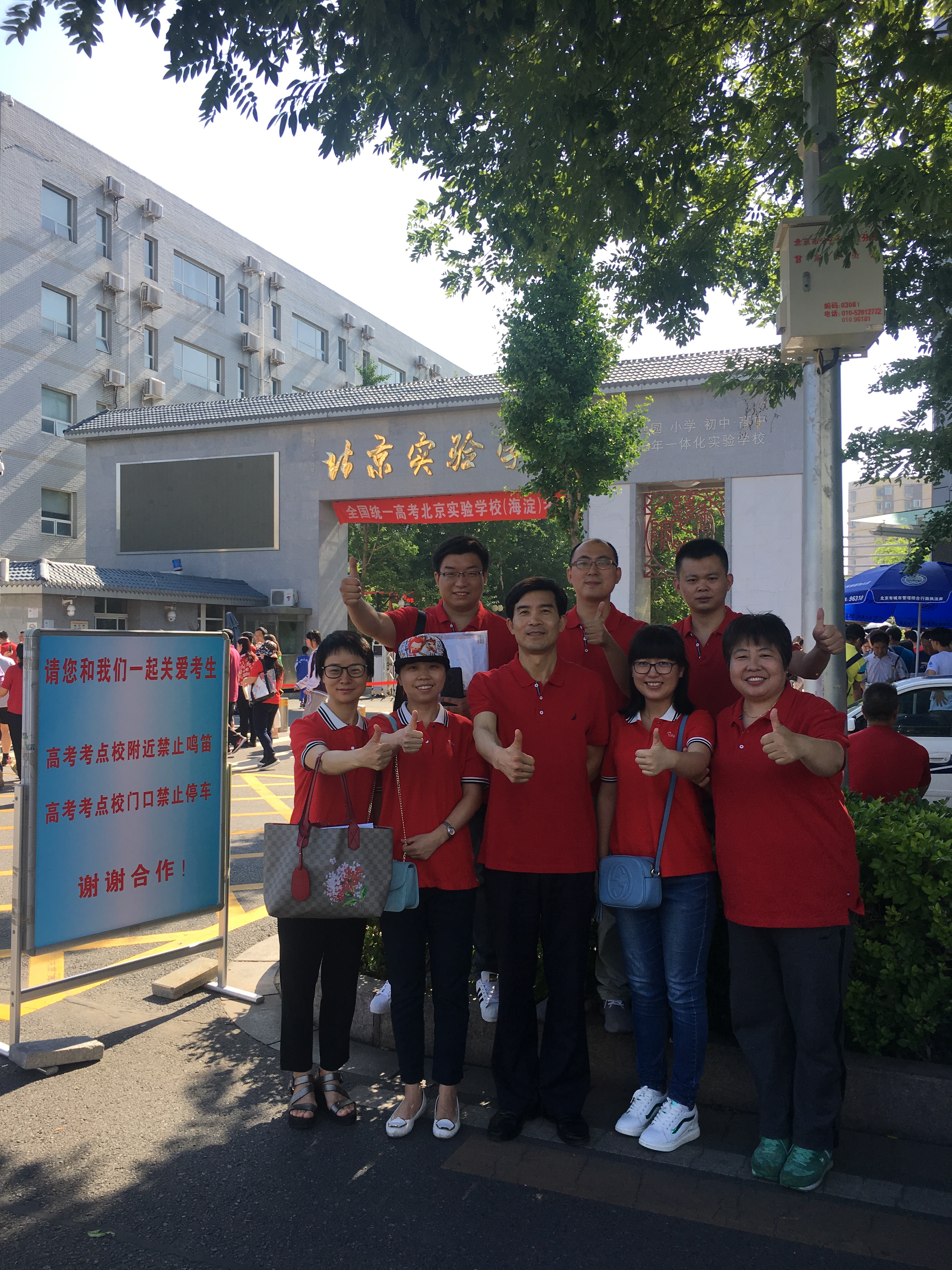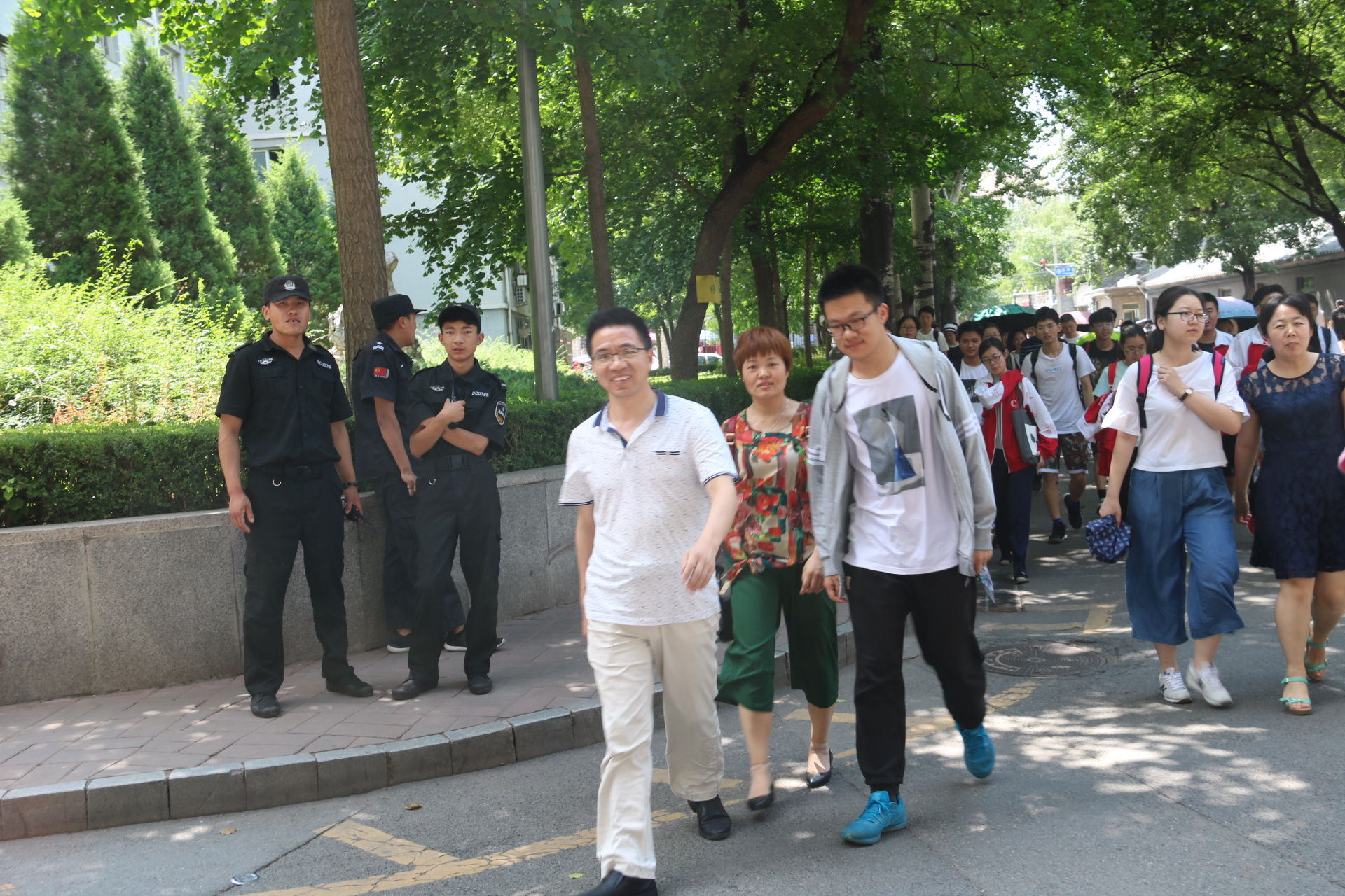 陪伴考生进入考点的带队领导和老师们