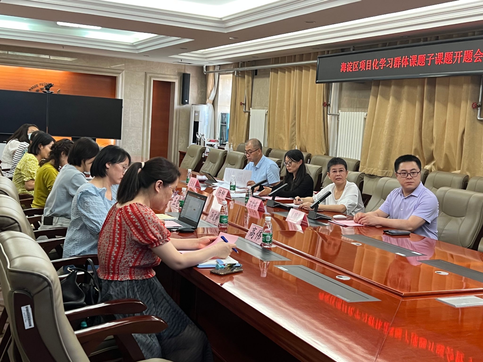 在海淀区教科院国际教育研究中心的关怀与指导下,海淀区“十四五”规划群体课题“新课标下PBL项目化学习实施策略研究”——民大附中专场开题会暨专题培训活动于6月1日在我校海淀校区举行,并面向其他课题参与校的老师进行了线上同步直播。北京师范大学教师教育研究中心博士生导师黄嘉莉教授和项目化学习群体课题负责人、海淀区教科院国际教育研究中心科研员杨柳博士,民大附中校长助理、数学正高级教师达延俊老师作为开题专家全程出席了会议。会议由民大附中教科室副主任姜明亮主持。