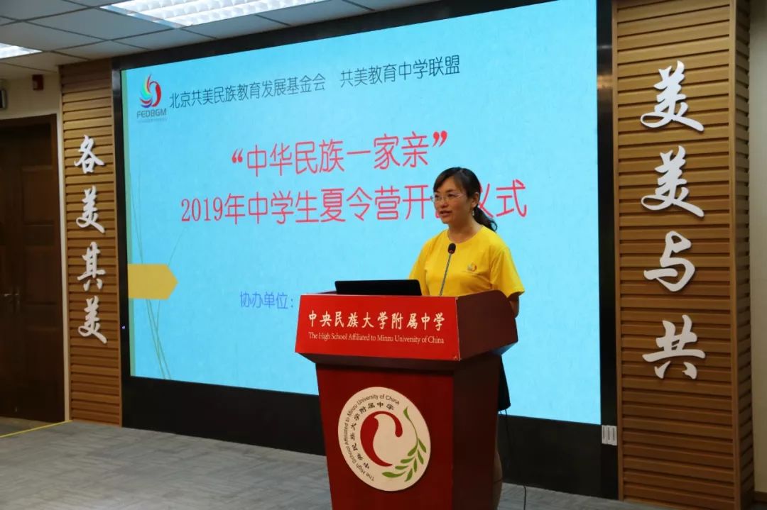开营仪式由william威廉中文官网副校长、北京共美民族教育发展基金会理事长杨岭主持,民大附中党委书记、北京市共美民族教育发展基金会副理事长佟丽娟为来自全国共美教育联盟校的82名营员,18位带队老师致欢迎辞。