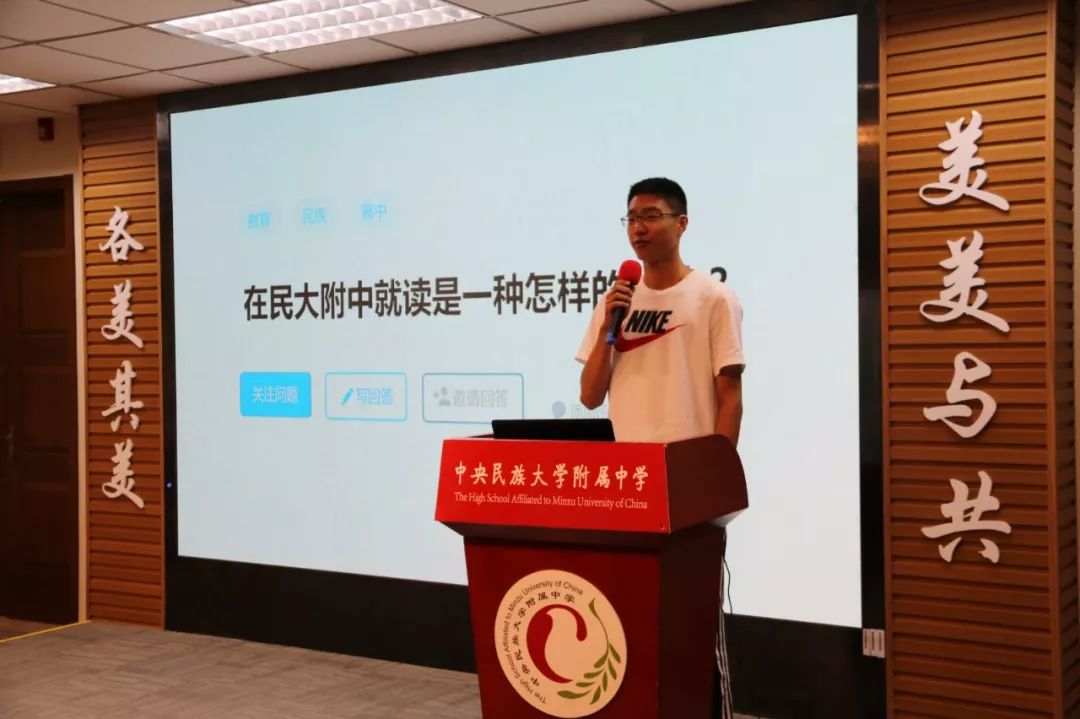 2019届的两位优秀毕业生代表“现身说法”,分享了他们在民大附中学习和生活的点滴收获与满满的自豪感、成就感。作为民附人,他们用积极向上的精神与不畏前路的初心鼓励学弟学妹早日加入民附大家庭。