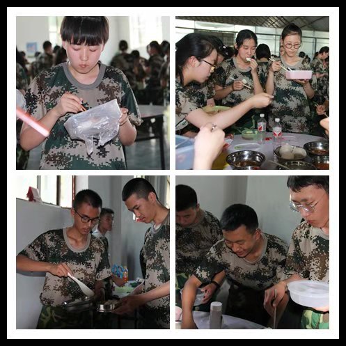 严格的训练是最好的开胃菜,锻炼了大半天的同学们,挤挤嚷嚷包围在圆桌旁,平日里对饭菜的挑三拣四都消失不见,一个小小的馒头都格外香甜,几大盆菜很快便一扫而空。