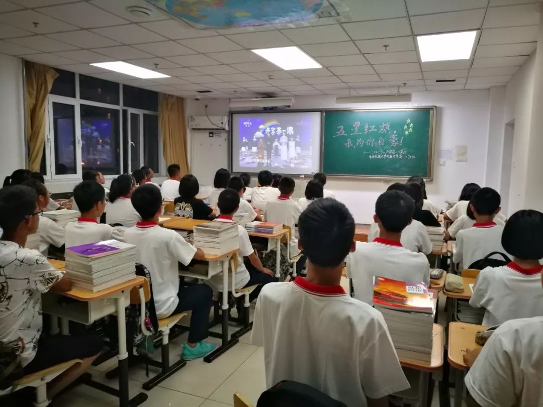 2019年夏末,伴着蝉鸣我们开始了崭新的学期。9月1日晚,集体观看开学第一课,不同于往年,今年的节目似乎更加突出了“爱国”的主题。回顾历史,我们努力建设国家,先烈们在监狱里绣红旗洒热血,他们用血肉建设新中国。上九天揽月,下五洋捉鳖。中国的战士们,报国家扬国威。运动健将科学家,不同的岗位不同的职责,只为一个共同的目标。新时代我们努力建设国家,新时代我们更加爱国。新时代是我们的时代。整装待发,你我一起扬帆起航,书写属于我们的中国梦!