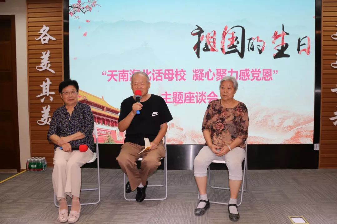 在“天南海北话母校 凝心聚力感党恩”主题座谈会环节,附中邀请了王良明、白凤荣、王秀苓三位退休老师代表发言。退休党支部书记王良明老师首先发言。8月,附中84届毕业生校友们举行了毕业35周年同学会,几位老教师受邀赴四川成都参加了此次聚会。