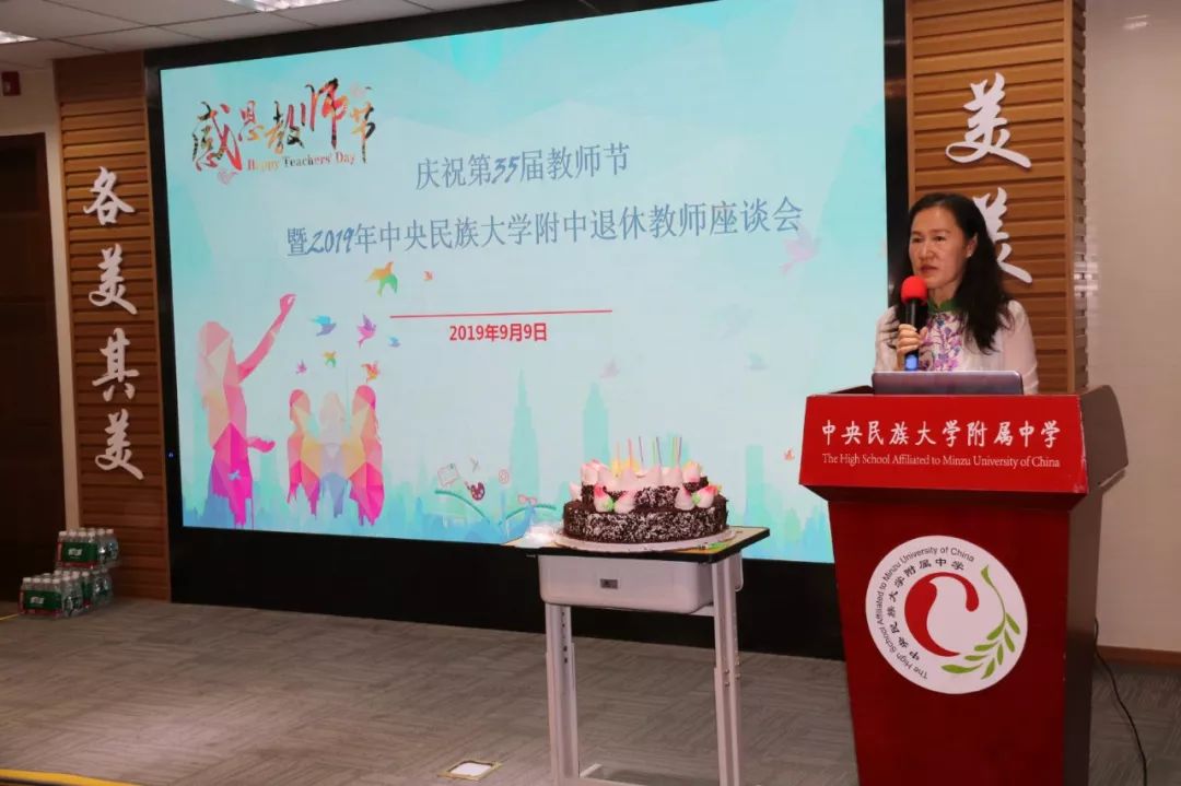 佟丽娟书记首先代表学校领导及全体师生问候各位退休教师节日快乐,并重申了附中坚持为退休老师们举办教师节庆祝活动的初心和意义。附中党委始终将退休工作作为重点工作之一,纳入学校年度工作计划,提供资金和人员保障,力求丰富退休老同志多样化的养老服务需求和对美好生活的追求,为退休老干部提供展示退休后精彩生活的平台。退休党员队伍思想政治建设要一刻不放松,传承好民附优良传统,将厚重底蕴、优良师德代代相传。佟丽娟书记还介绍了附中集团化办学的发展成就和对未来的发展愿景,学校处在发展的关键时期,作为民附人大家都可以出一份力共同探索附中新的生长点。