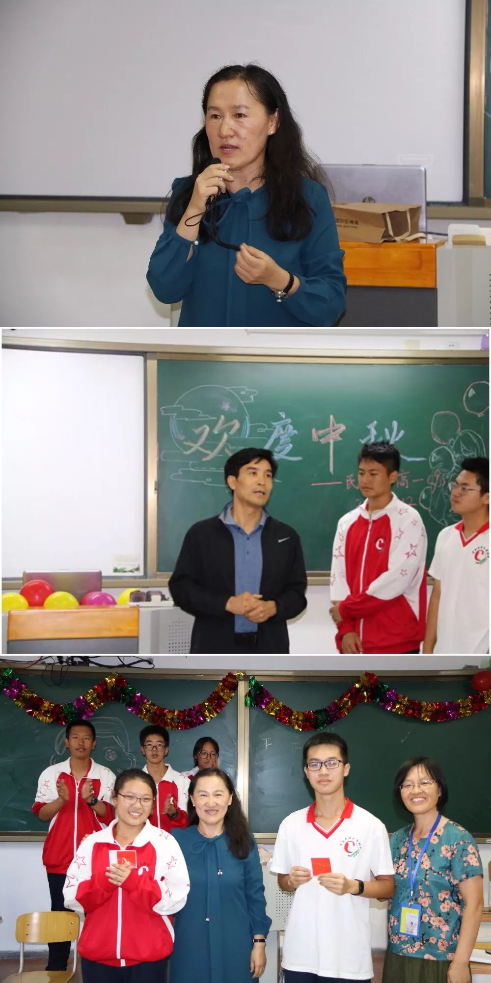 联欢会当天,佟书记、王校、周主任及高一年级金主任等人深入每个班级,送去学校的问候。