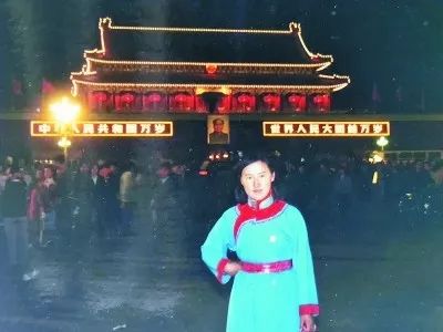 1984年国庆联欢晚会结束后,佟丽娟在天安门前留影