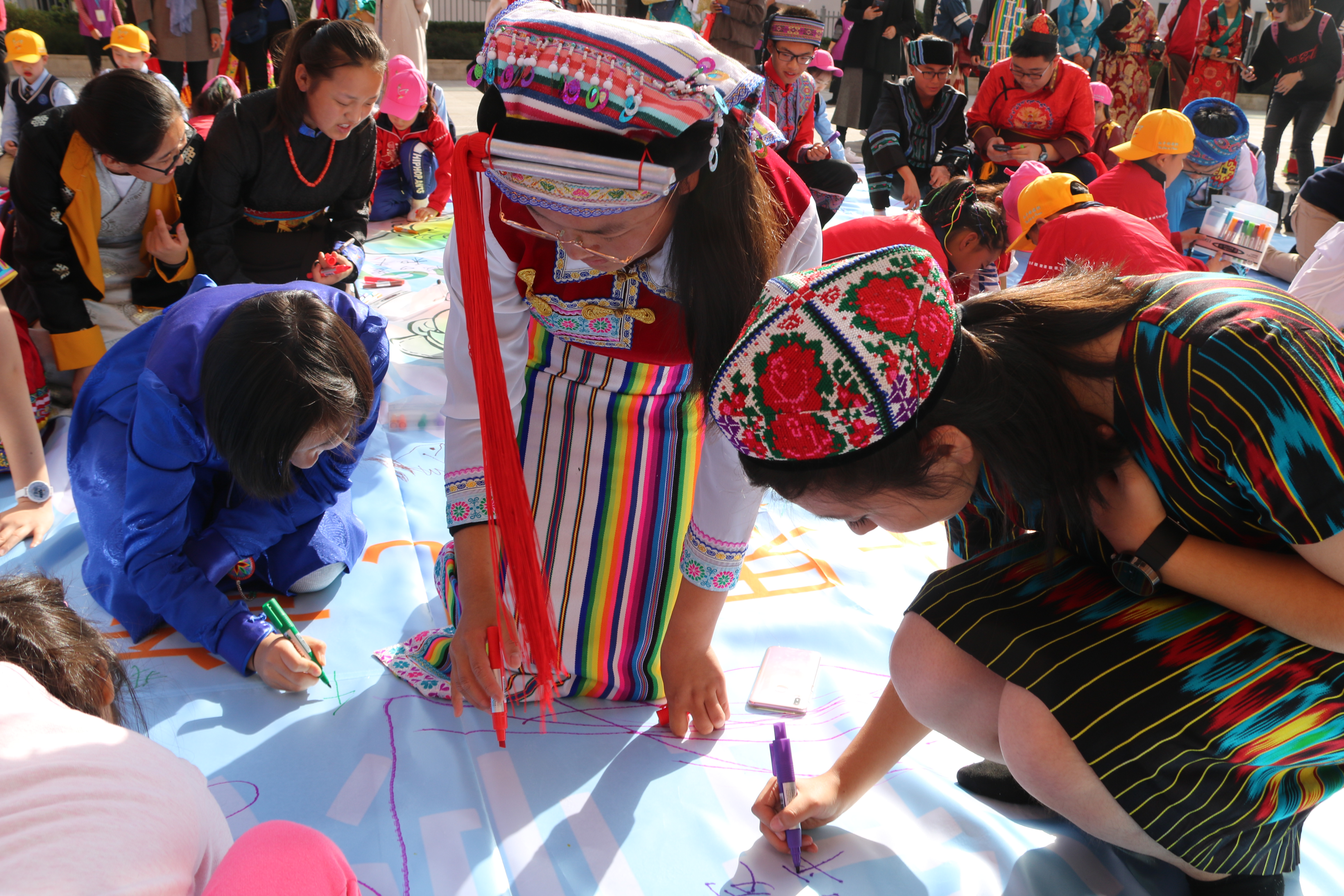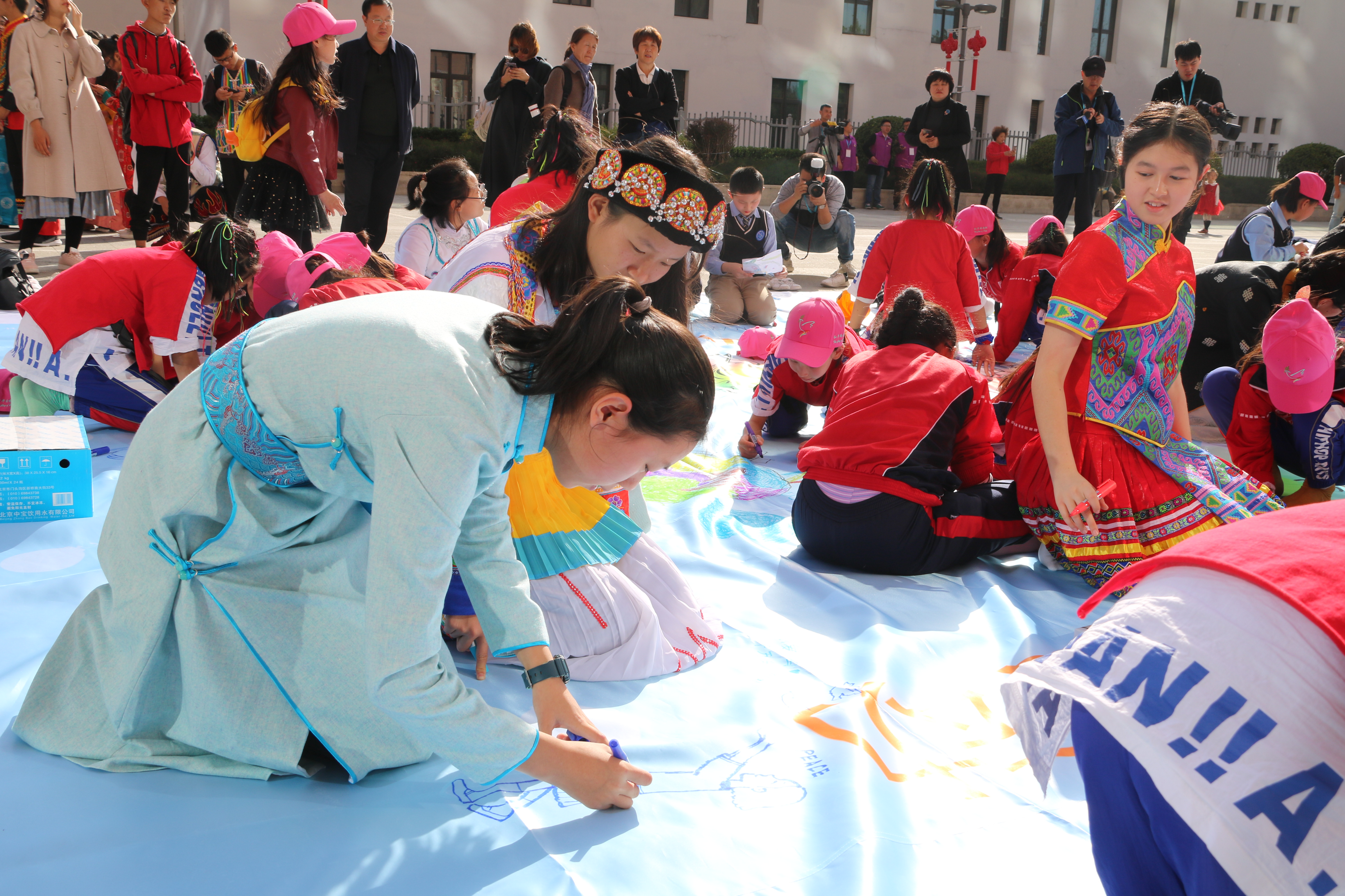 各族学生参与绘制巨幅画作《和平的旗帜》