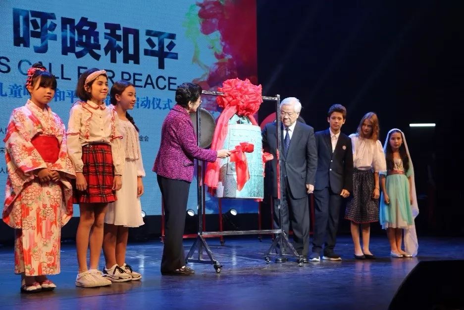 活动开始由顾秀莲主任和蔡武部长以及联合国儿童代表共同敲响三尊瓷钟,向世界传达着儿童呼唤和平的美好愿望。