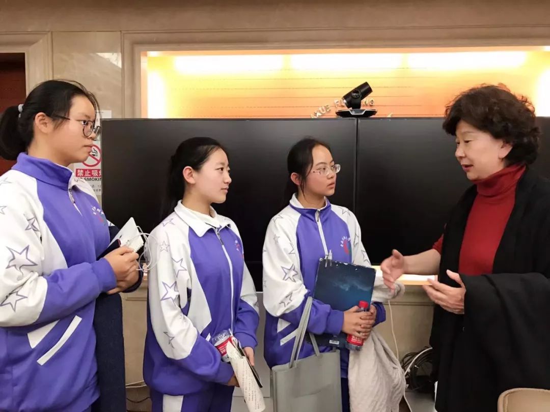 民大附中党委书记佟丽娟与苏菲校友、听讲学生合影留念