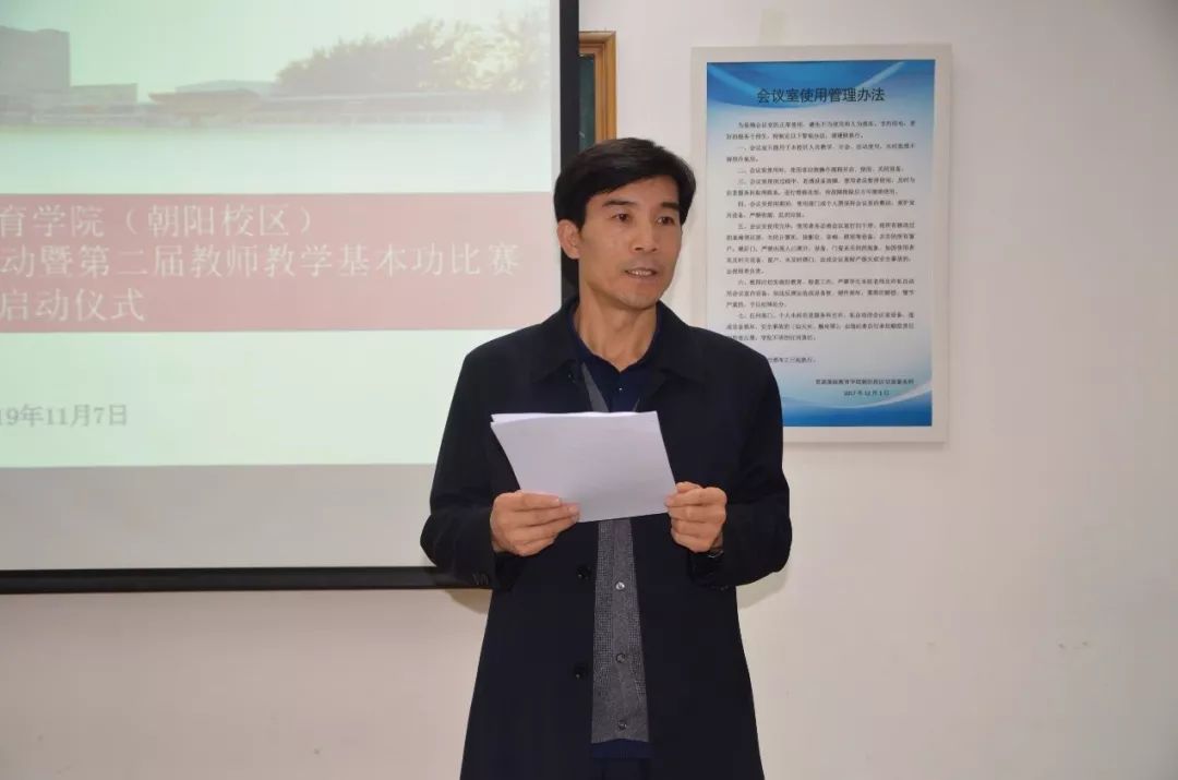 随后开展了第二届教学基本功比赛暨“教学能力大练兵”活动启动仪式。王国德副校长向全体教师解读第二届比赛的宗旨、组织机构、参赛要求,并详细介绍了比赛内容。他希望老师们以比赛为契机,立足课堂,研究贯通基础教育阶段的教与学,提升自身教育教学素养,提高课堂效率,进一步提高学生学习的获得感、成就感。