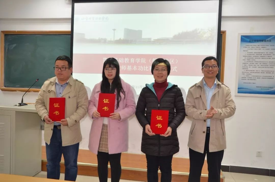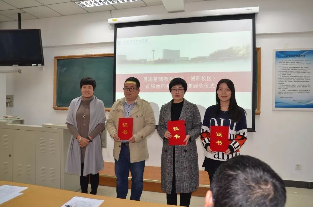 首先,由贯通基础教育学院院长董雪梅、民大附中副校长王国德、贯通基础教育学院副院长夏飞,为首届教师基本功比赛的获奖者颁发奖状。