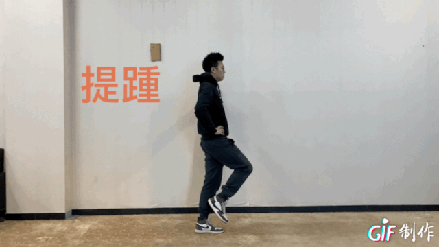 自然站立,可扶墙保持平衡,右脚踮起脚尖,脚跟抬至最高处,稍作停留后下落。换另外一侧。