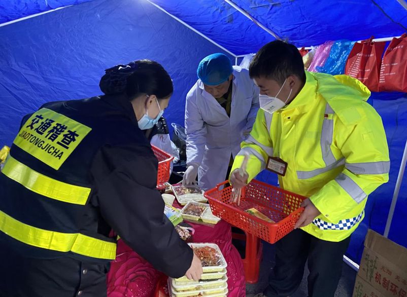 杨屹正在给设在收费站广场防疫检测点的医护人员送餐