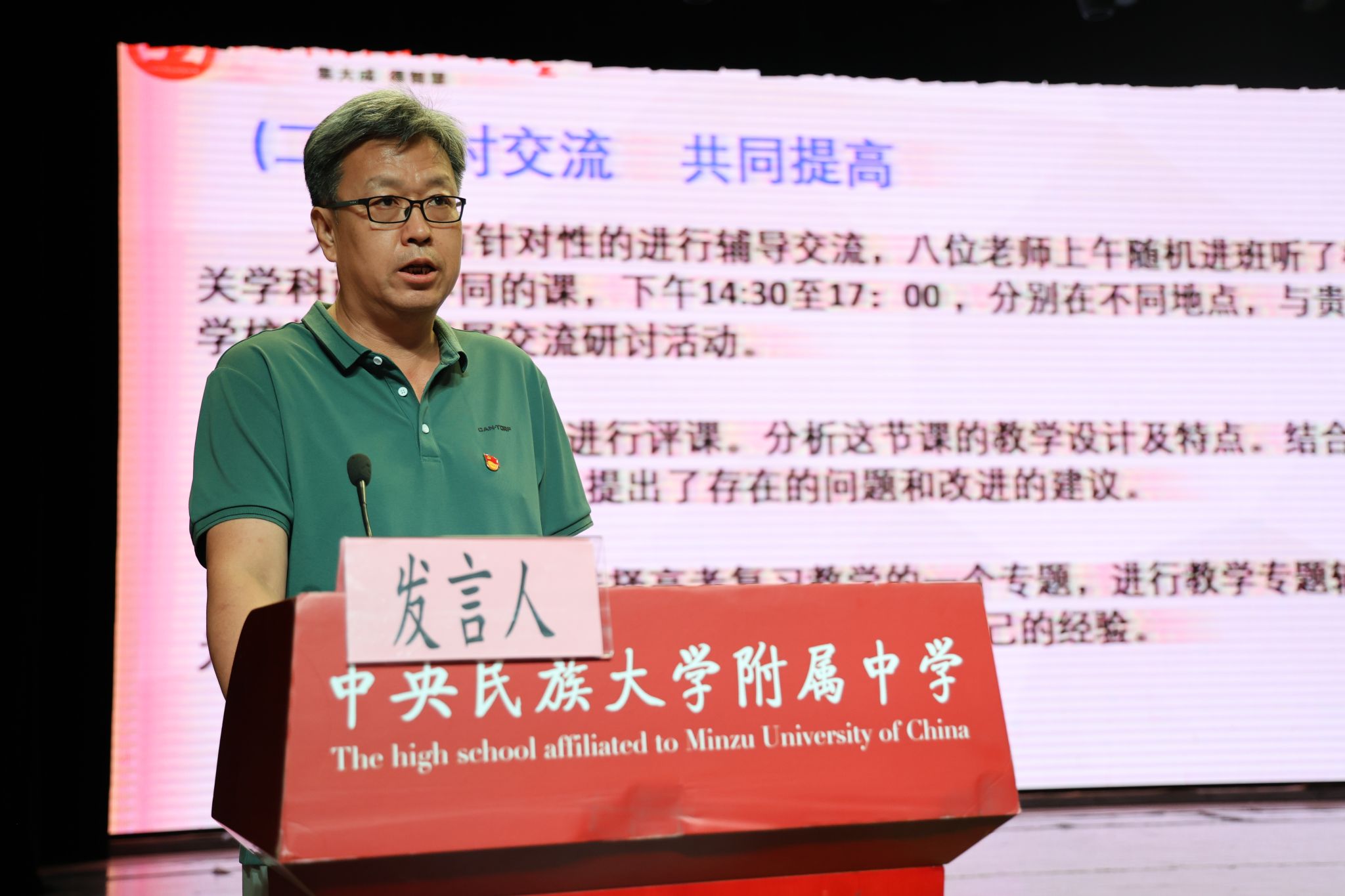 会上,由民大附中教育集团总校及海淀实验中学组成的9支高三年级支教团队依次对2023年“教育强国担使命 同心共筑中国梦”支教帮扶活动进行总结。在党委的精心组织指导下,本年度高三支教团分别前往内蒙古准格尔旗一中、河北承德围场一中、海南陵水分校、红河州实验学校、青海玉树(海东)分校、昆明五华实验学校、贵阳学校、呼和浩特分校、雄安校区,实地调研考察支教帮扶学校二十大精神学习贯彻、党建和思政工作特色、铸牢中华民族共同体意识教育等情况,并进行听评课和交流座谈。本次支教活动,助力帮扶学校教育高质量发展,促进该校青年教师教育理念和教学水平的提升,增进学校的交流与情谊,体现了中央民大附中一贯的教育情怀和使命担当。