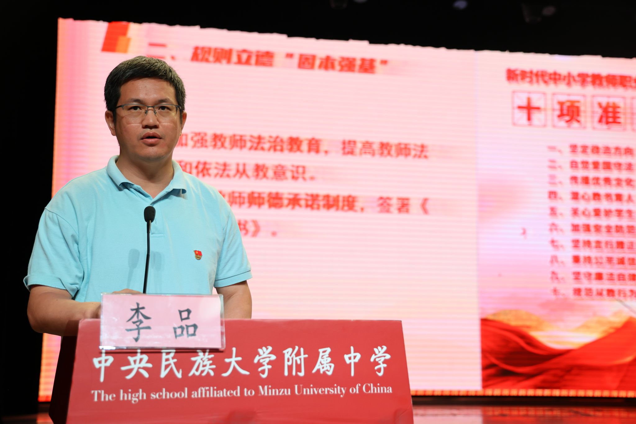 党委副书记、纪委书记李品对全体教职工开展师德集中学习教育