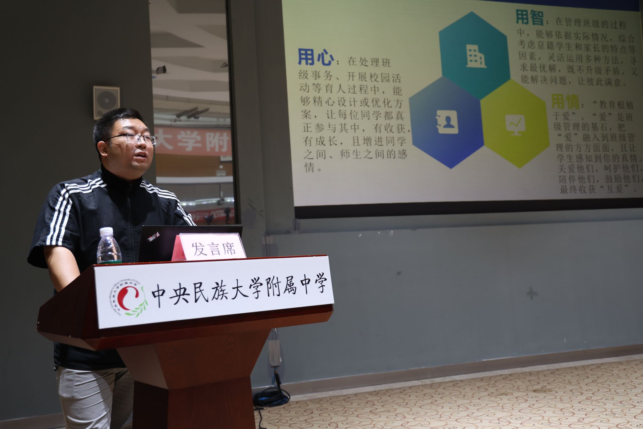 2023届高三年级的两位优秀班主任结合自己的亲身体验,现身说法,分享着班级管理的智慧。杨金雪老师汇报主题为《做接地气的教师,做有温度的教育》,她认为班级管理的成功,关键要立足学情,进行科学管理,同时严格常规,促进学风建设,与此同时,强调家校协同,共同助力备考,还需要学科教师之间同心同向,共同奋斗。李延帅老师针对京籍学生管理,汇报主题为《用智,用心,用情》,他细致分析了京籍学生及家长特点,总结出京籍班级管理的五大挑战,进而精准施策,用智慧、用诚心、用真情,深入归因,优化策略,将京籍班级管理工作做得井井有条。