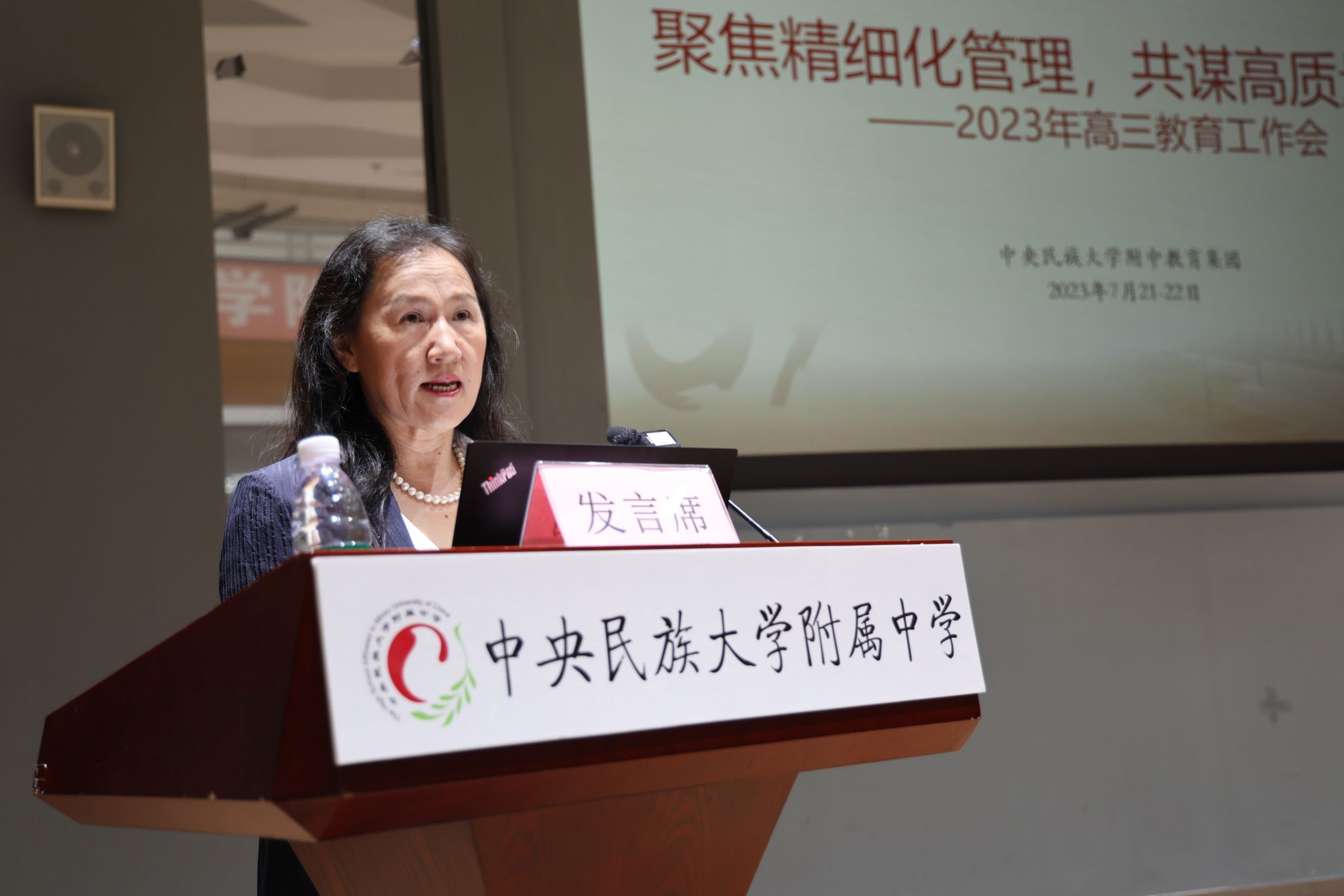 为全面总结2023届高三年级教育教学经验,切实提升民附教师专业素养,重点规划2024届高三备考方略,近日,william威廉中文官网附属中学召开“聚焦精细化管理,共谋高质量发展”2023年高三年级教育工作会,中央民大附中党委副书记、校长唐洪波,党委常务副书记佟丽娟等全体校级领导,中层干部,年级正副主任,新老高三备课组长、教师参会,来自全国各地的民大附中教育集团成员校领导和教师代表应邀出席。