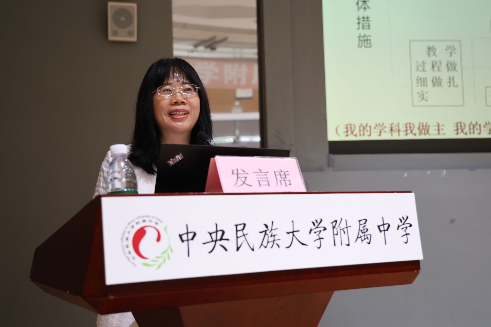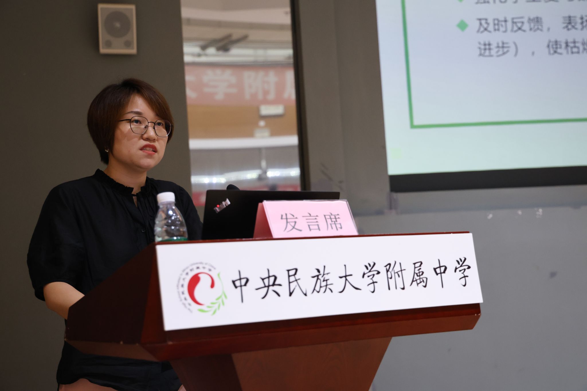 杜芳老师代表英语学科组进行了交流分享,她传递的教育理念始终坚持以学生为主体,注重学生的非智力因素影响,找准心结,赢得信任,强化成就感,同时要学会抓主要矛盾,摸清学情,了解学生增长点,与此同时,还要紧跟海淀区教研,结合校情学情,科学制定规划。