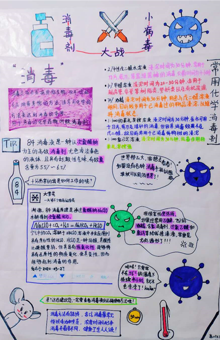化学组的老师们以肺炎疫情为社会背景,以家庭为学习的主场,充分发挥化学学科特色,以提升学生自我管理和自主学习能力,提高学生的化学学科核心素养,培养学生社会责任感、家国意识为教学宗旨,精心设计系列自主学习任务,学生在学习小组内开展探究性学习活动。
