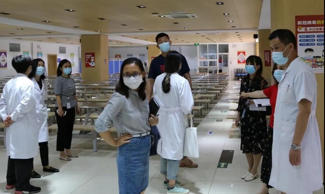 评估组分小组考察了朝阳校区开学复课教育教学准备、防疫物资储备、食堂卫生和校园安保等情况。学校各小组负责人现场予以介绍、解答评估组疑问,并接受评估组现场指导。