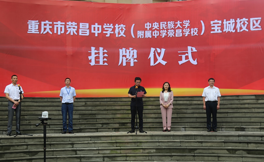 中央民大附中荣昌学校宝城校区的正式揭牌,是学校发展史上的一件大事,也是荣昌区教育事业发展的一件喜事,相信在民附人“各美其美、美美与共”的文化感召下,荣昌学校必将越办越好。