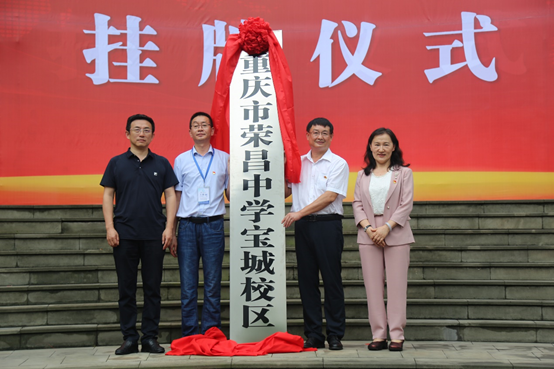 李劲渝副区长、佟丽娟书记共同为荣昌中学宝城挂牌