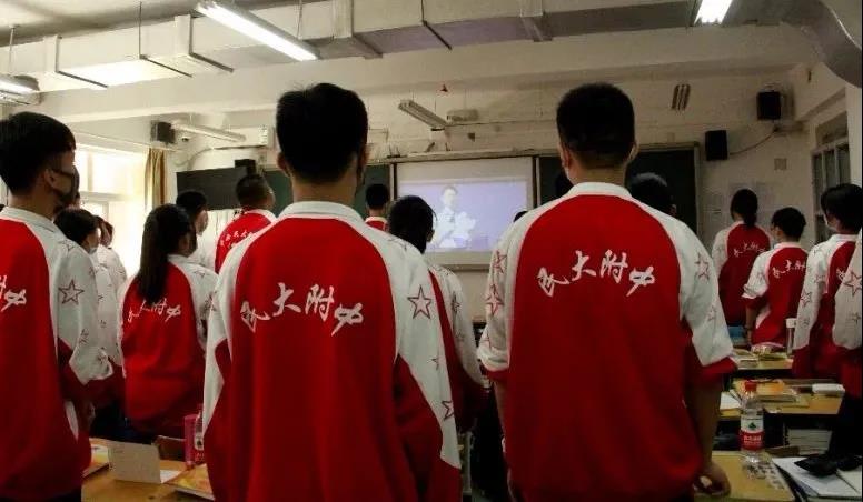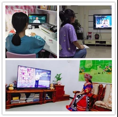 各班学生在班级观看升旗仪式同步直播