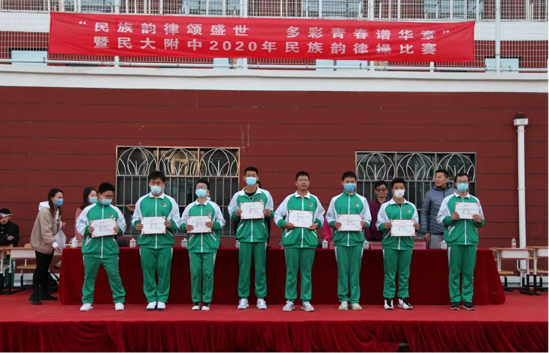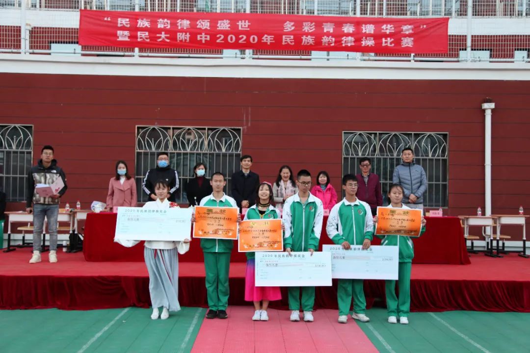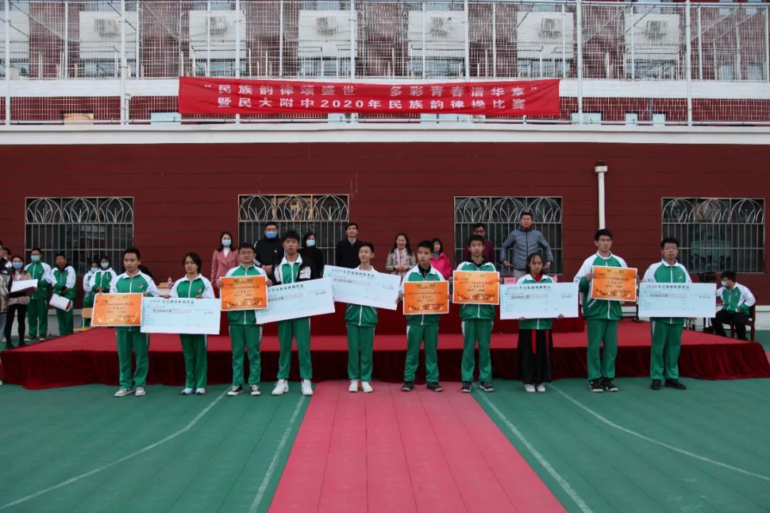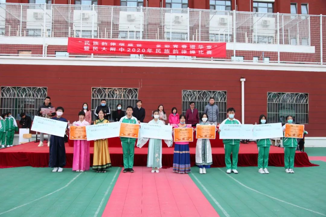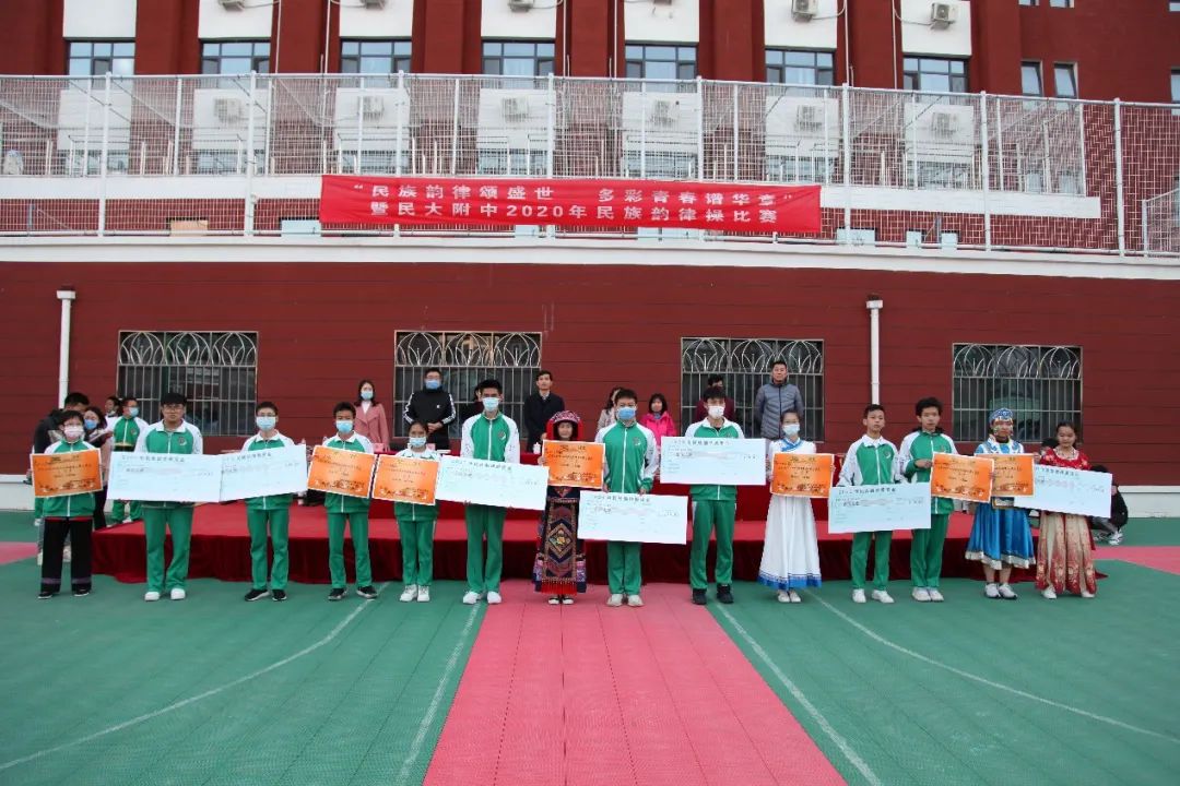 民族方阵展示后,党委书记佟丽娟就本次活动进行了精彩总结。佟书记指出,民大附中党委自2020秋季开学以来,以铸牢中华民族共同体意识为民族团结进步教育月的工作主线,指导团委开展了一系列思想引领活动。民族韵律操是一项融各民族文化、音乐律动、精神活力于一体的有益运动,每年度的民族韵律操比赛,是民大附中党团组织开展的民族团结教育品牌活动。比赛亦是每个班各美其美的展演,最后推出的各班代表组成的汇演就是美美与共。每个方阵都是一部作品,老师、同学们用自己的方式去演绎、去表达,让人看后为团结拼搏的民附2020级师生喝彩!佟书记代表学校对所有为本次活动付出的老师、同学们致以诚挚的问候!最后,她希望大家要在具有百年光荣民族团结的民附大家庭中,将“爱我中华”的音乐旋律根植于心,并在今后的高中生活中,将民族团结、民族文化艺术的种子,通过支教、对外交流播撒在祖国大江南北,真正践行“讲政治、传文化、学知识”的使命!