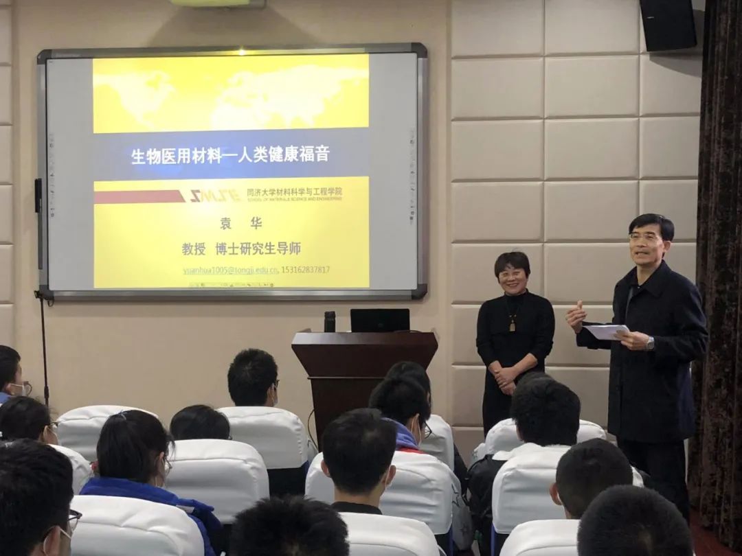 11月26日下午,同济大学材料科学与工程学院袁华教授来到我校朝阳校区,为高一年级同学们开展了题为“生物医用材料——人类健康福音”的科普讲座,中央民大附中副校长王国德出席了本次讲座。