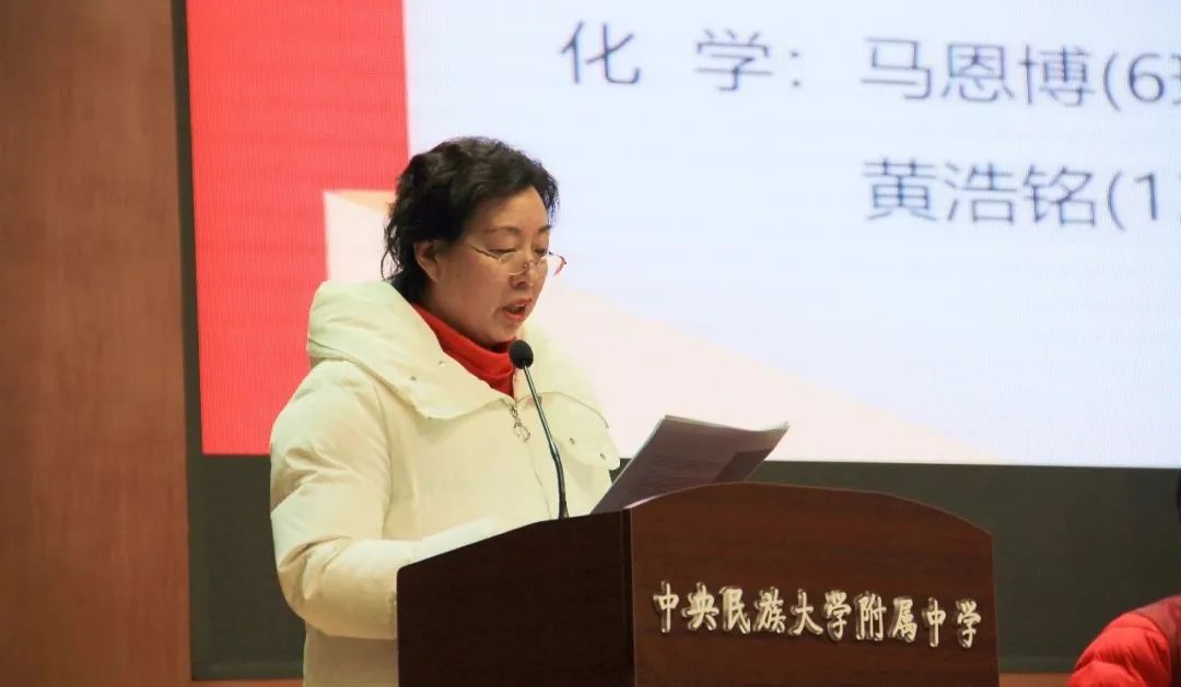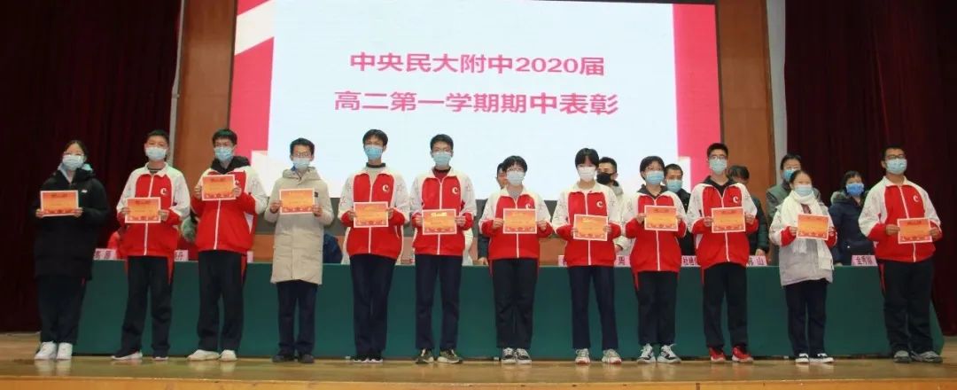 总会计师李淑霞宣读了中央民大附中2020-2021学年第一学期“民族希望”基金“雄鹰奖”高二年级获奖学生名单,并由到场领导为获奖学生颁发奖状。