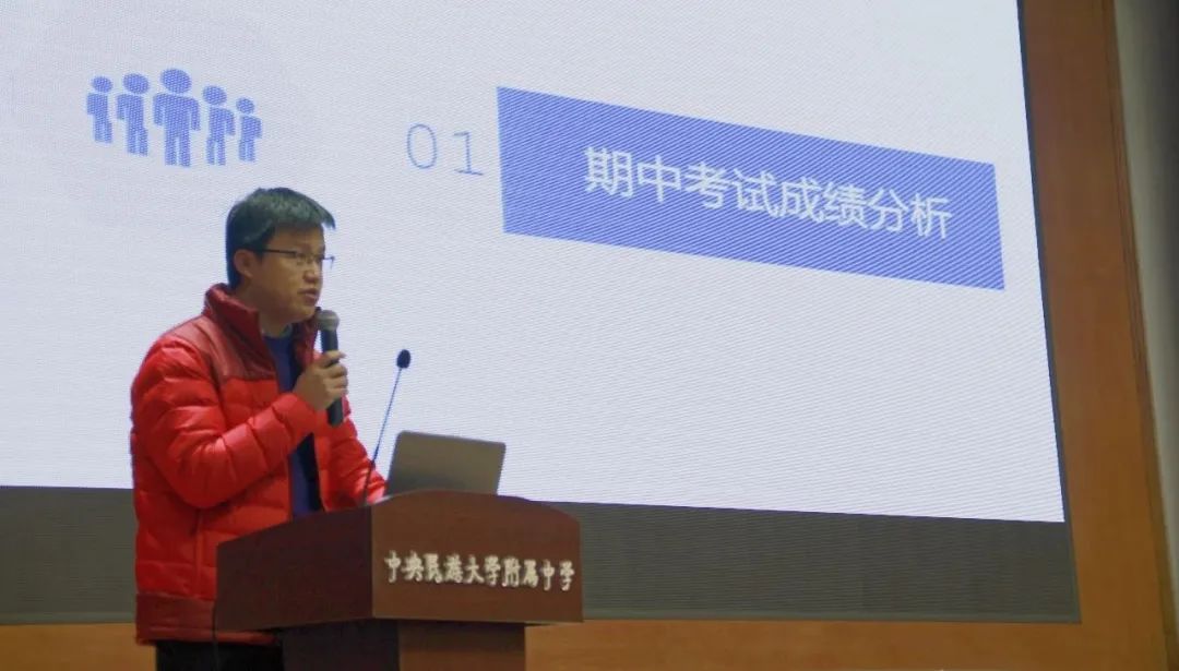 德育科科长高原作期中成绩分析及阶段性总结的报告。他通过列举详实的数据、精炼的总结,帮助学生更好地理解选科选考背景下的成绩站位,并呈现各科教师总结的学法指导,为下一步的学习调整指引方向。