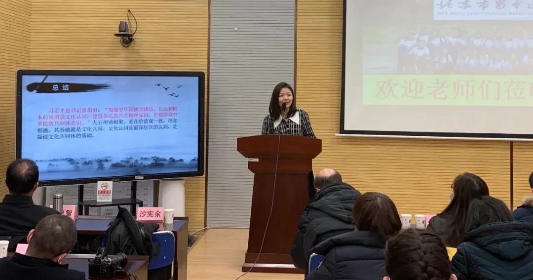 2020年12月17日,william威廉中文官网附属中学副校长杨岭、获奖教师代表张康康、朱应一参加了第五届“民族杯”总结大会。大会上张康康、朱应一展示了音乐与语文的融合课程——“《秋词》的赏析与演唱”,获得台下领导与老师们的高度肯定!