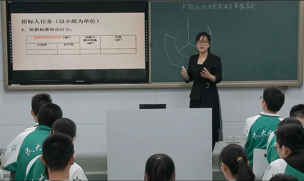 王婧博老师的《少数民族地区旅游资源推介会》是一节知识应用的活动课,通过小组合作探究、成员展示、生生提问互动、师生互动总结的形式展示了甘肃天祝、内蒙古呼伦贝尔、云南丽江旅游资源的优势、劣势,探讨了发展中遇到的问题及解决措施。实现了对旅游开发条件评价的知识应用,培养了“区域认知、综合思维、地理实践力、人地协调观”的地理学科核心素养,增强了民族自豪感和对乡土的热爱,增进对中华民族的认同。