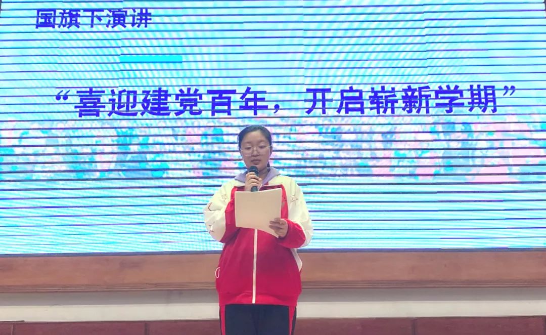 随后,高一年级学生代表王一飞同学作了题为《喜迎建党百年 开启崭新学期》的国旗下演讲。王一飞同学从一百年前孕育“红船精神”的党史说起,回顾了百年来祖国日新月异的巨变,并表示作为新时代的民附青年,要勇敢地肩负起时代的重任,义无反顾地承担起实现中华民族伟大复兴的历史使命,向着这一目标不懈奋斗。