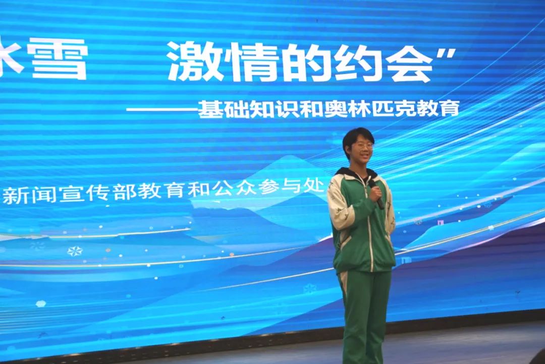 为帮助同学们更深入了解冬奥,我校特邀北京冬奥组委新闻宣传部孙斌处长来校开展了冬奥知识讲座