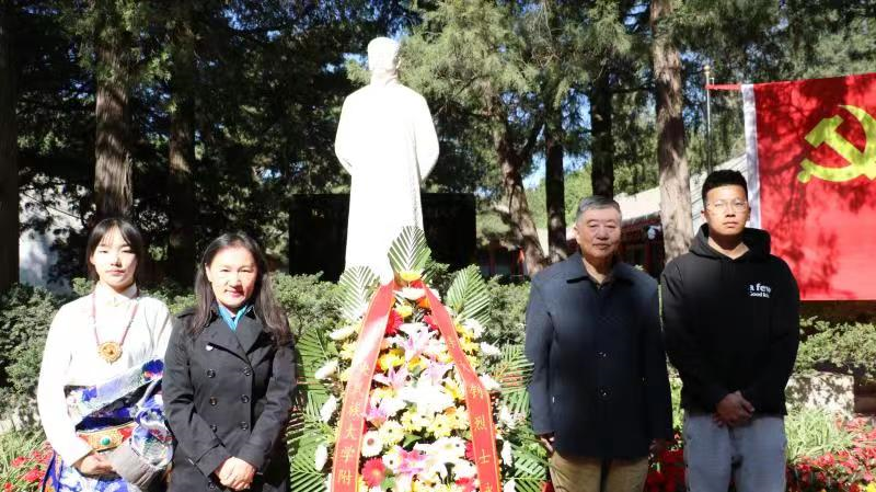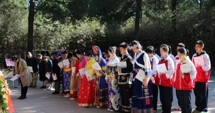 其少年中国心,传承其马克思主义观,共同上一堂贴近民大附中的党课、团课以及爱国主义、民族团结教育的思政课。“缅怀先烈李大钊,坚定信仰跟党走”,更好地践行中国共产党人“为中国人民谋幸福,为中华民族谋复兴”的初心使命。佟书记强调,我们深知生命无法不朽,尽管李大钊同志已经离开我们94年了,但是其精神永垂不朽!我们缅怀大钊先烈,就是要让民大附中前身蒙藏学校的红色基因绵延不断;就是要传承大钊先烈身上闪耀的爱国主义精神、牺牲奉献精神,铭记他为立党兴党强党作出的伟大贡献!佟书记希望,通过今天的主题教育,能够团结凝聚全国各地各族校友和在校师生学党史、祭先烈、守初心、担使命;用一代又一代共产党人构筑的精神谱系滋养心田,自觉扛起新时代赋予每个民附人的神圣使命,铸牢中华民族共同体意识,为中华民族伟大复兴的中国梦贡献力量!